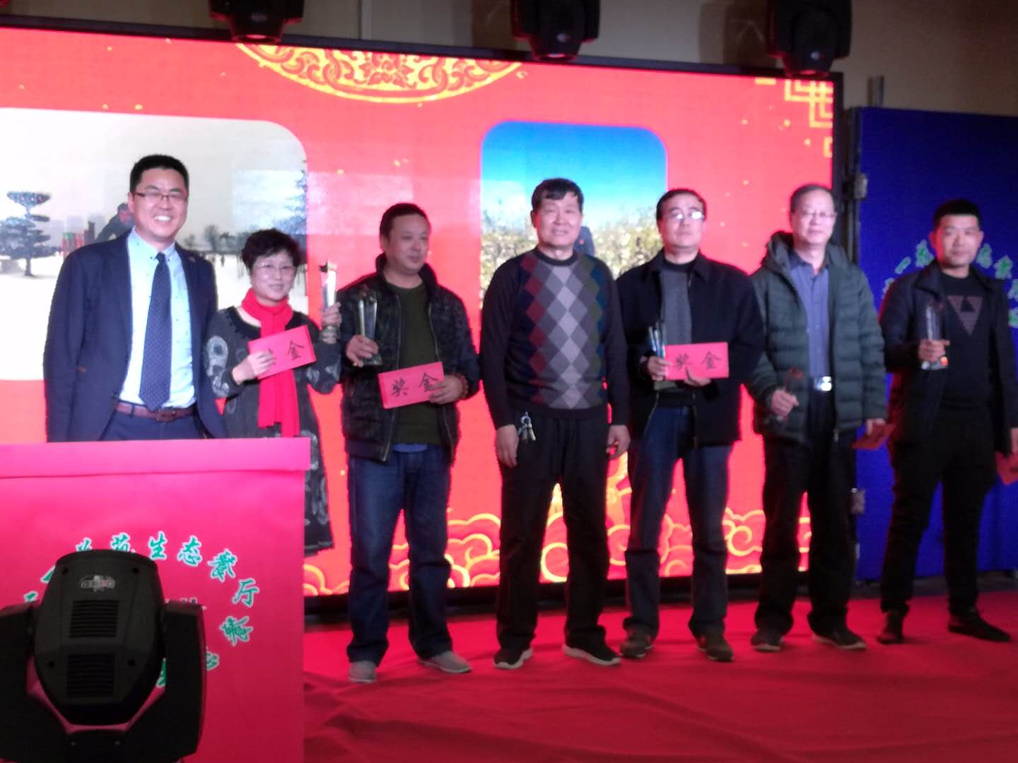 史恒總裁宣讀榮獲2017年度渭灃集團最佳敬業(yè)獎的人員:單國強、馬振田史恒總裁為最佳敬業(yè)獎員工頒獎并合影留念